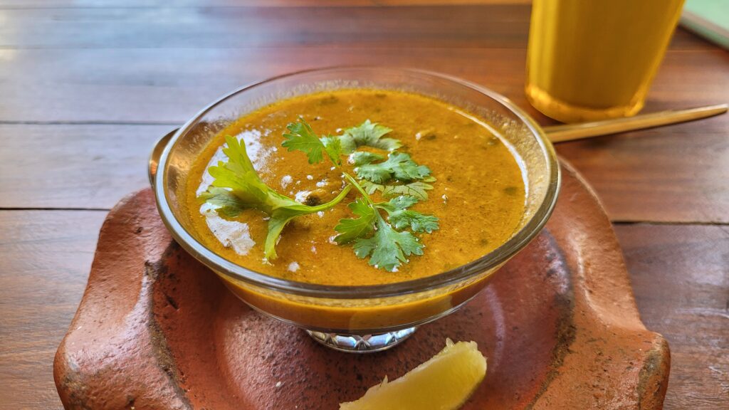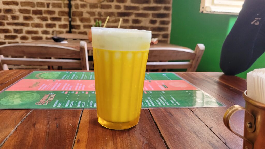 Iniciamos com uma CABULOSA, que é um clássico da casa que é uma limonada de coco (que, caso não saiba, é uma bebida típica da Colômbia) que estava bem gostosa, mas não se equipara às “verdadeiras”. Nosso primeiro prato foi uma mariscada (sim, uma mariscada vegana) de caju que estava simplesmente DIVINA. A textura da carne de caju que Alceu Valença tanto fala, os temperos… tudo ótimo e foi nesse ponto que começamos a entender o porquê dos Pernambucanos falarem e gostarem tanto de um caldinho.