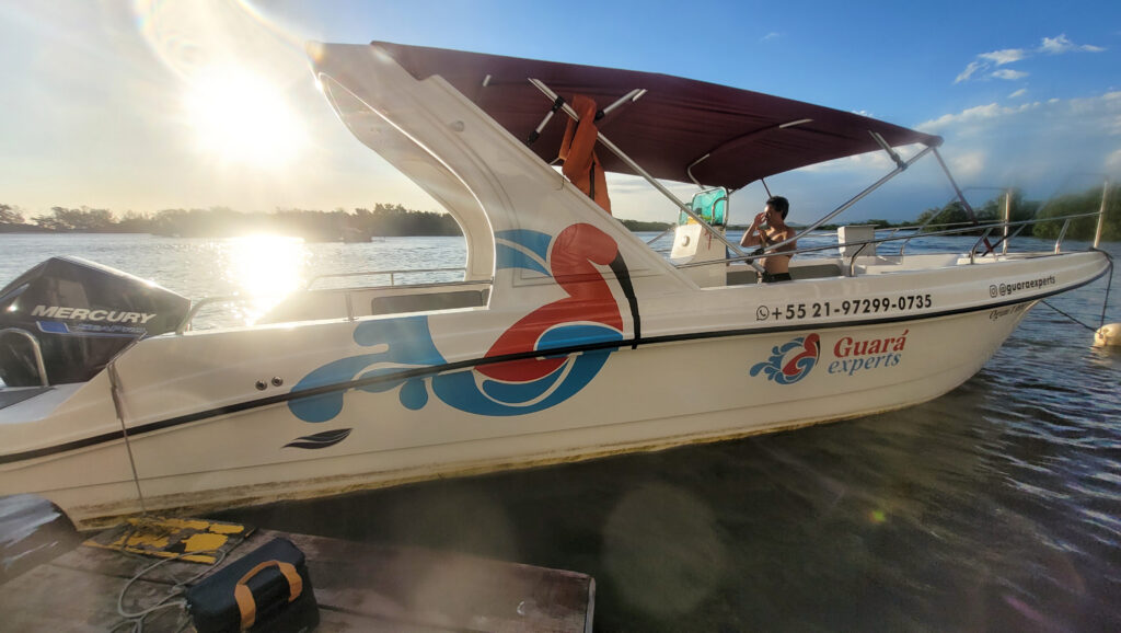 Os Embarques costumam acontecer na sede deles, que é bem sinalizada e fácil de encontrar. Além disso, descobrimos lá que também são donos de uma hospedagem que funciona no mesmo local, com a acesso direto ao mangue. Nesse outro post nosso (inserir ink do SUP) já falamos sobre o quão legal é essa região, logo pode valer bastante a pena das essa conferida (não desprezem o mangue). Seguindo o mesmo padrão de sinalização, o barco também é todo sinalizado. Esses fatores em conjunto com os guias muito solícitos mostrou que apesar de ser uma empresa pequena, prestam um serviço turístico super profissional e de excelência.
