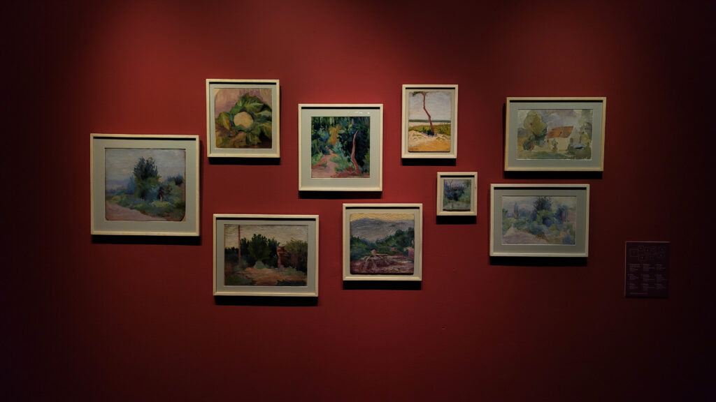 Como falamos, cada setor/sala se baseava em um fase da vida da artista, sendo assim podemos ver como os cenários influenciaram a produção artística de Cecília. Foi notório como as questões étnicas do Brasil (com participação de Cândido Portinari) apareceram em seus quadros, como Jujuy e seus cenários arenosos influenciaram na paleta de cores e no uso de pastéis.