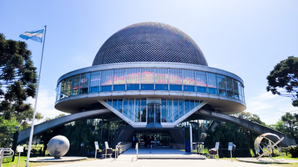 Localizado do outro lado do Parque 3 de Febrero, o Planetário já chama atenção com seu formato. Parece uma nave estacionada no meio do nada (em um lugar que pescam na grama, não duvidamos de mais nada). À noite ele fica muito bonito, bastante iluminado, parece até mais uma nave. Mas vamos lá, além de bonito por fora, temos coisas para explorar por dentro também.