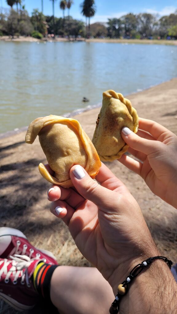 Como excepcionais apreciadores de comida (o que não é segredo) tivemos a sorte de estar acontecendo um evento no dia em que fomos, logo tivemos que ir conferir né. Apesar de ter saído de nossos roteiros, foi uma ótima surpresa. Como citado anteriormente, era um evento promovido organizado pelo governo da cidade para promover práticas de boa saúde, unindo esporte e alimentação. Lá encontramos uma feirinha de comidas e curiosamente e felizmente grande parte era vegana. O nome do evento é Sabe La Tierra, é basicamente uma feirinha que tem como missão promover questões ligadas à sustentabilidade dentro da CABA (Ciudad Autonoma de Buenos Aires), podem acessar o instagram deles por aqui e se inteirar mais do que se trata. Aconselhamos, caso tenham a oportunidade de visitar.
